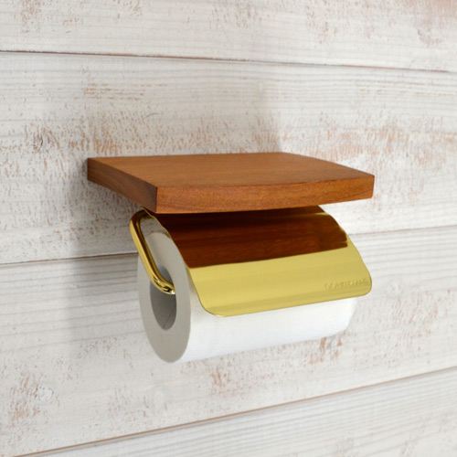トイレットペーパーホルダーにウッドシェルフが付いた、便利な一品です。