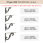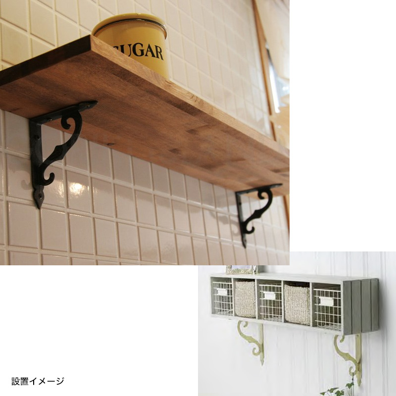 ゴールド・古色・古白色・ブラックの4色展開の真鍮製アングルは、アンティークなデザインのL字型の棚受金具です。S字型の支持アームにはプレートを削ったような装飾が施されています。