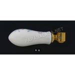 ※ 写真Bのような「プラスチック・ハンドル」の場合、ハンドル上のキャップをカッター等で突付いて外し、キャップが外れたらプラスネジが出てきますので、ドライバーで取り外してからスピンドル交換作業を行ってください。