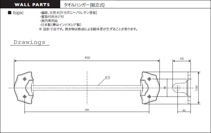 温かみのあるクラシックな風合いが洗面所やトイレを優しい雰囲気にします。磁器と天然木で出来たタオルハンガー(タオル掛け)です。オールドイングランドのトイレ小物やバス用品とお揃いにするのがお勧めです。