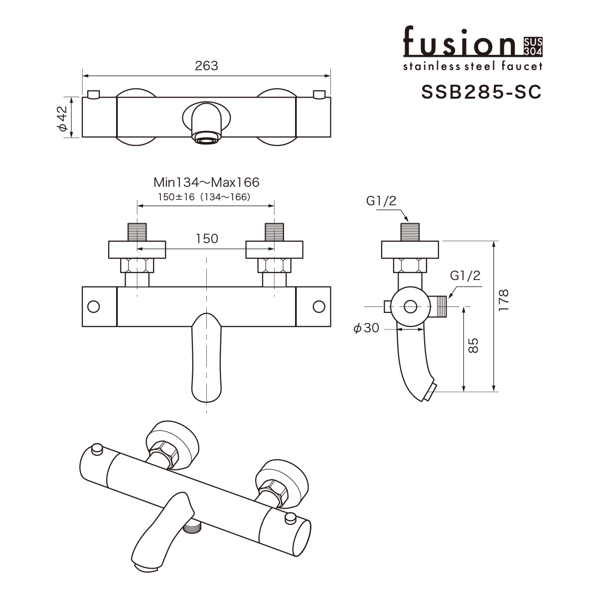 耐久性・衛生性・デザイン性のすべてを追求する fusion(フュージョン)から、SUS304ステンレス製のサーモスタットシャワー混合栓「SSB285シリーズ」が誕生しました。浴室空間の質を高めることを前提に開発された本製品は、一般的な浴室水栓とは一線を画す堅牢な構造と高い操作性、美しさを兼ね備えています。