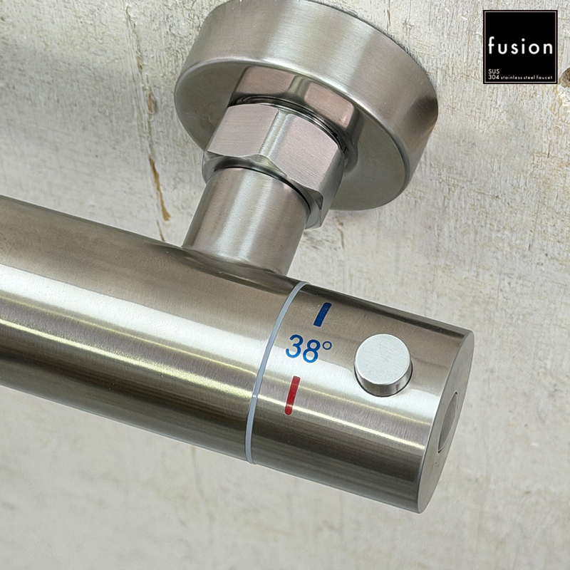SUS304 ステンレスの強さと、樹脂カートリッジの安定性、そして Neoperl エアレーターの快適さを融合した新世代のサーモスタットシャワー混合栓。