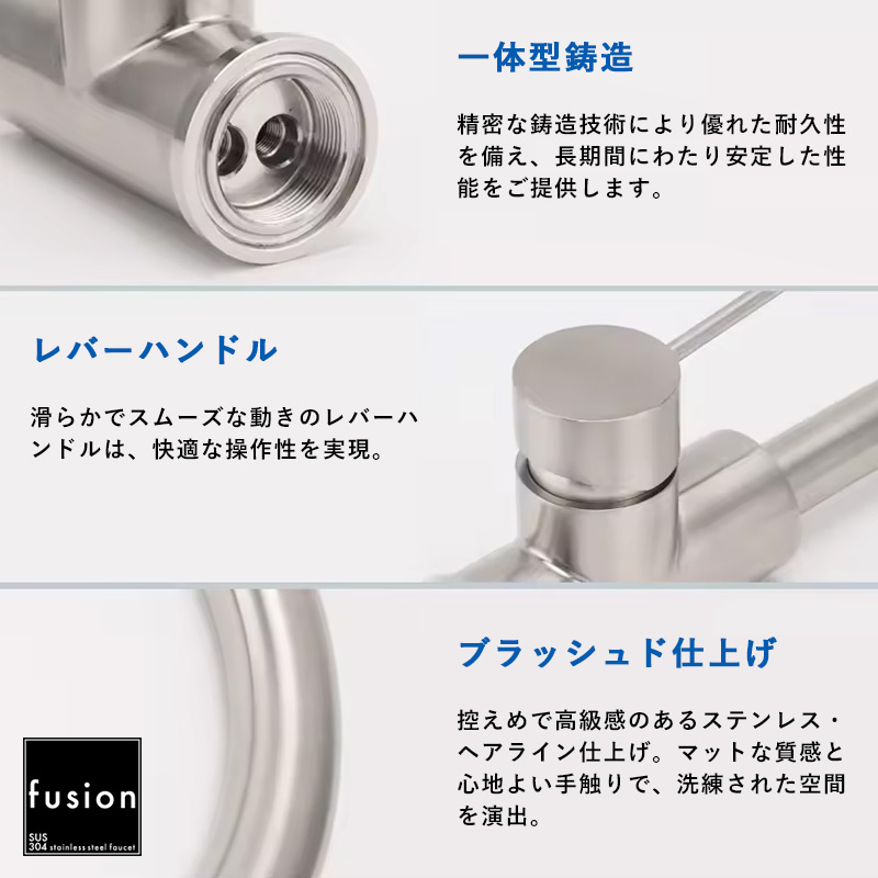 fusion/フュージョンは、ステンレスに特化したステンレス製水栓金具のオリジナルブランドです。