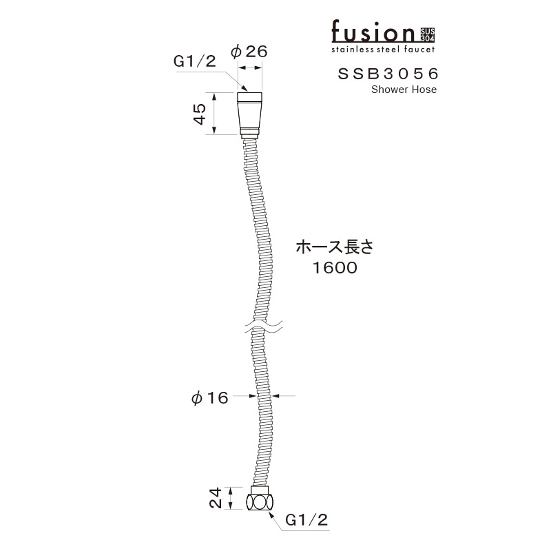 最高使用温度60度の耐久性に優れたステンレス製ジャバラホースです。fusionのハンドスプレーやfusionのシャワーヘッド、国内メーカー製のシャワーヘッドなどにお使い頂けます。取付金具は回転式のためホースがねじれにくい仕様です。