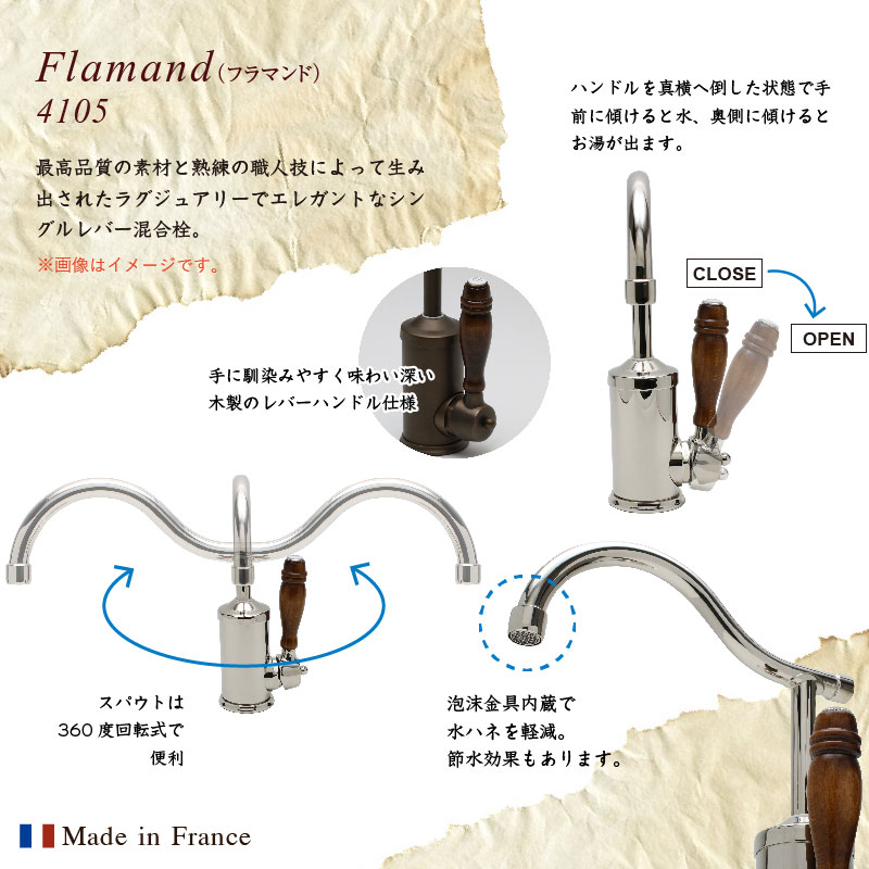 当社は国内唯一の Herbeau社水栓金具の総代理店としてフランス本社から直輸入販売を行っています。日本の水道環境に合わせたカスタムメイドを行っておりますので、日本国内で問題なく設置・ご使用いただけます。