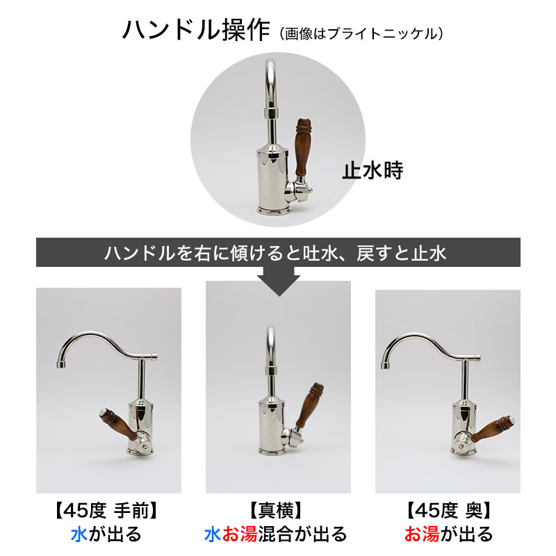 セラミックディスクカートリッジや愛らしい木製レバーなど、最高品質の素材と熟練の職人の技術によって作り出された機能的で魅力のある水栓です。メインのキッチンシンク用におすすめです。