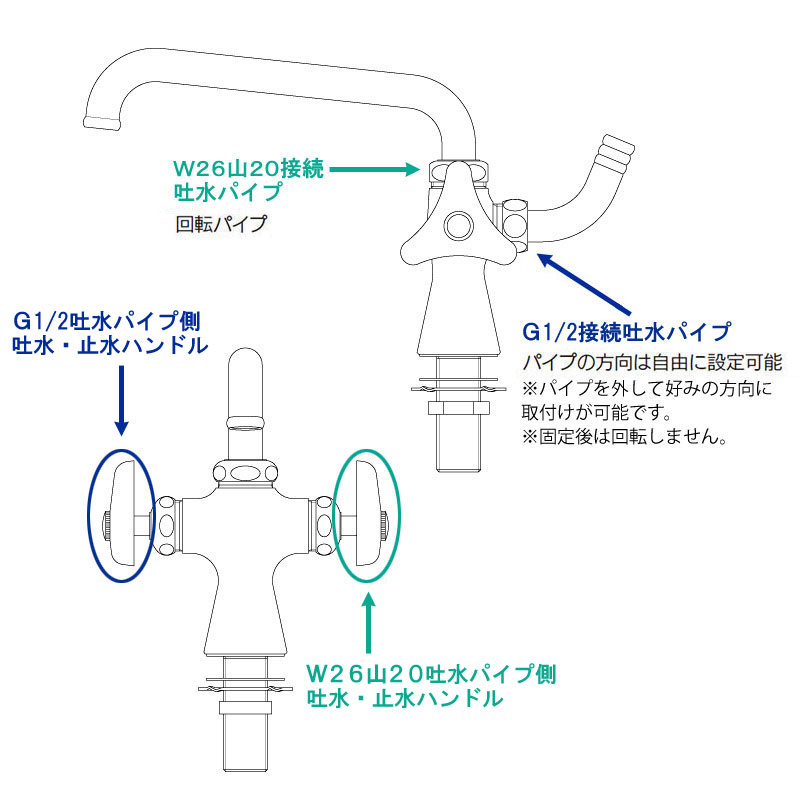※水、またはお湯のどちらか片方に使えます。混合栓ではありません。
