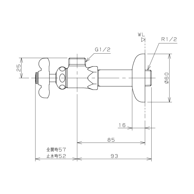 - 商品はアングル止水栓本体のみ。給水ホース(ブレードホース、接続用銅管など)、蛇口、洗面器・手洗器、その他部材等は含みません。