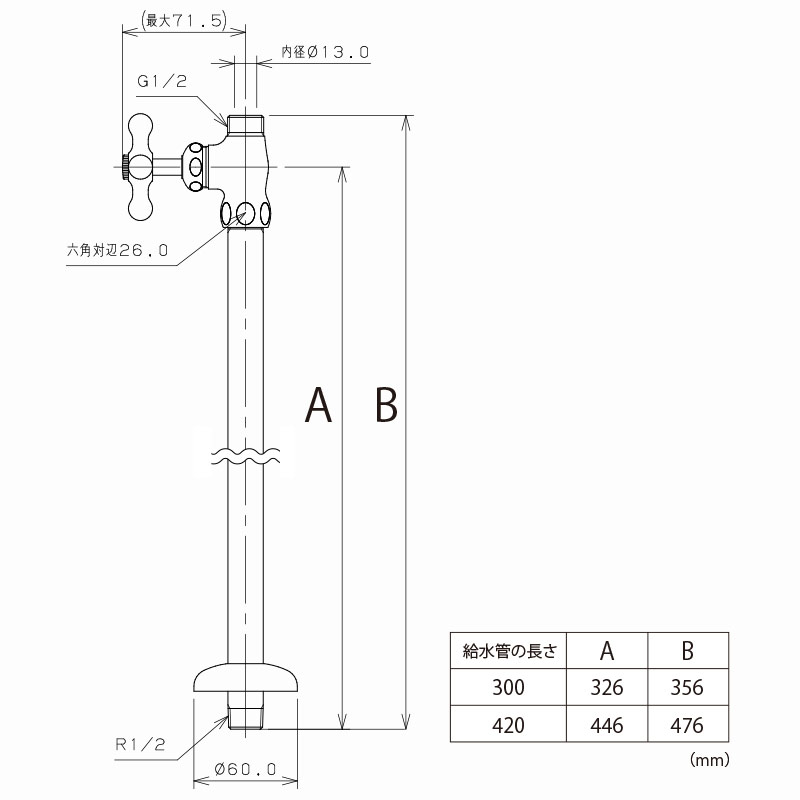 | 給水管 | 300mm(床から接続面までの有効寸法:約346mm) |
