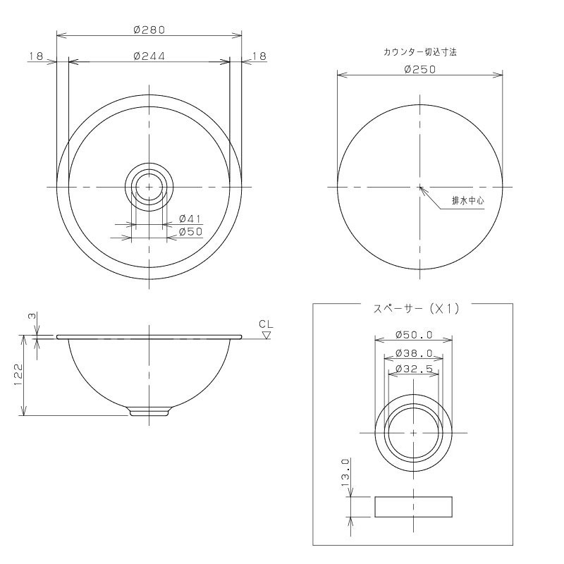 洗面器や手洗器は製品の性質上、1%~2%程度の公差が生じる場合があり、若干の個体差があります。