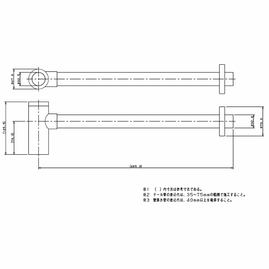 壁排水対応のボトルトラップ管です。
