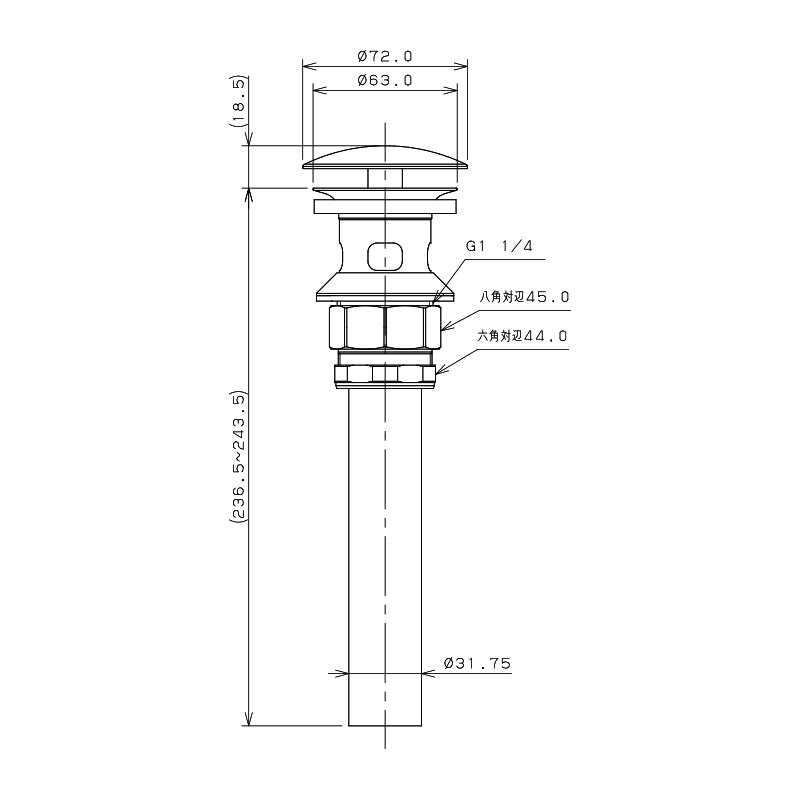 - 化粧キャップ付排水ユニット。 ※この排水金具は水・お湯を溜められる構造ではありませんので、ご注意下さい。
