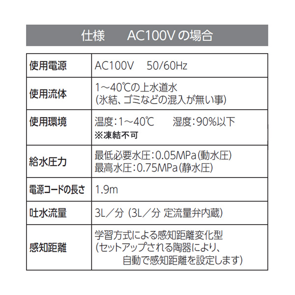 | 吐水位置 | 出幅(L)90×高さ(H)41mm |