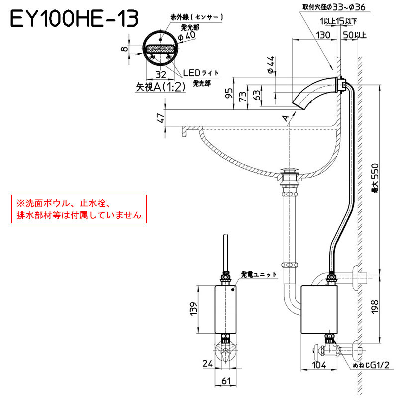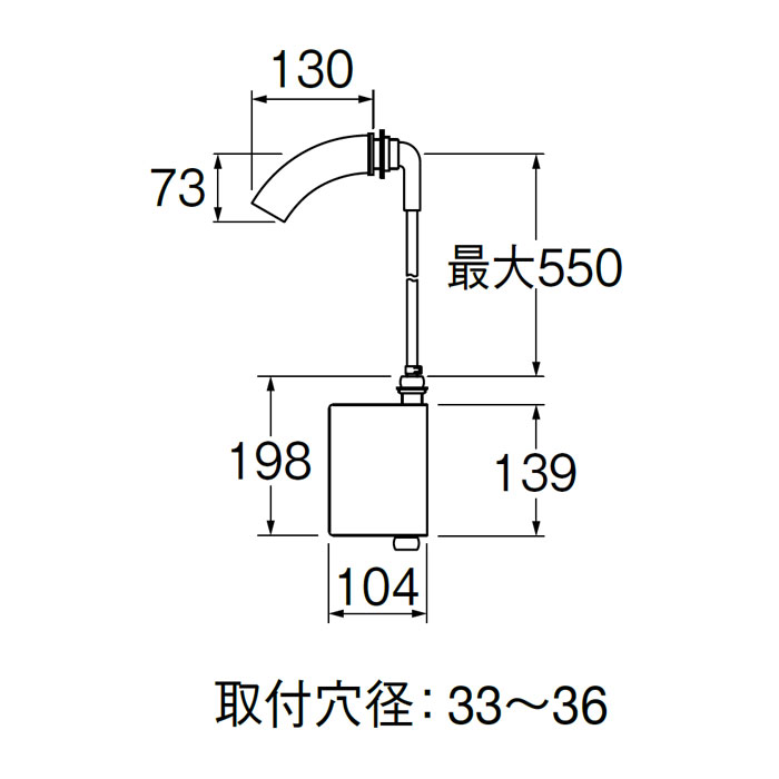| 吐水位置 | 取付け面からの出幅:130mm |