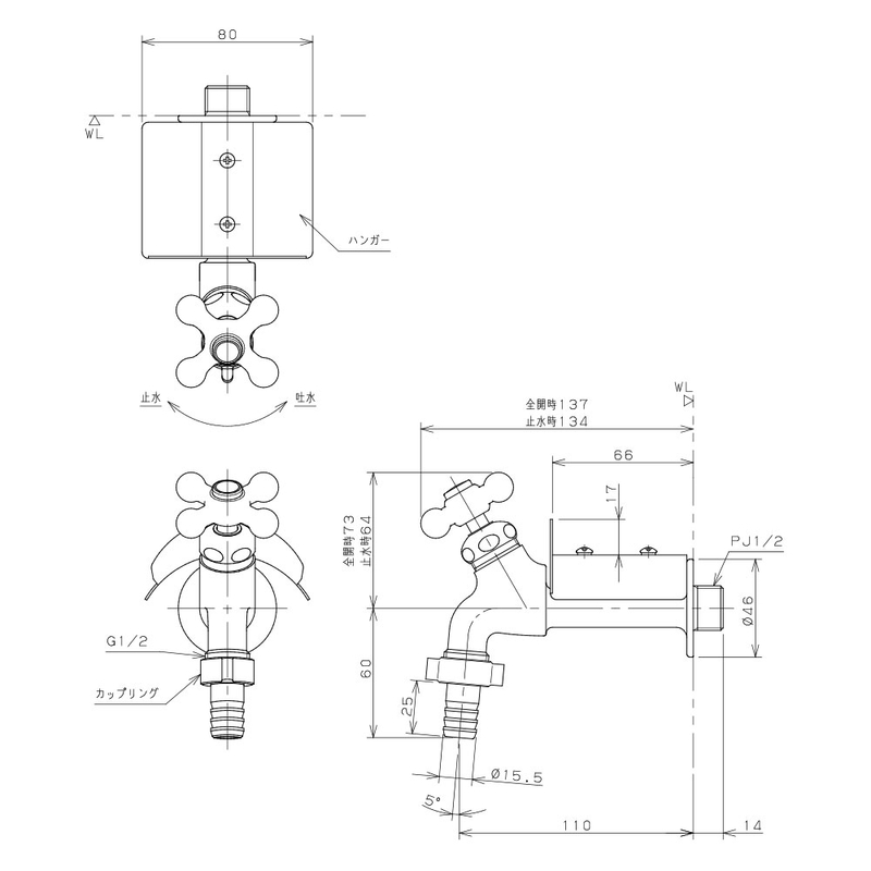 - ネジ規格:JIS規格「給水栓取付ねじ13」(PJ1/2)
