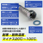 - 特殊構造により、両端の接続固定部分と中間部のフレキシブル(メッシュ)部分が個々に回転する為、袋ナットを締め込む際に伴う“ホースのねじれや折れ” が起こりません。