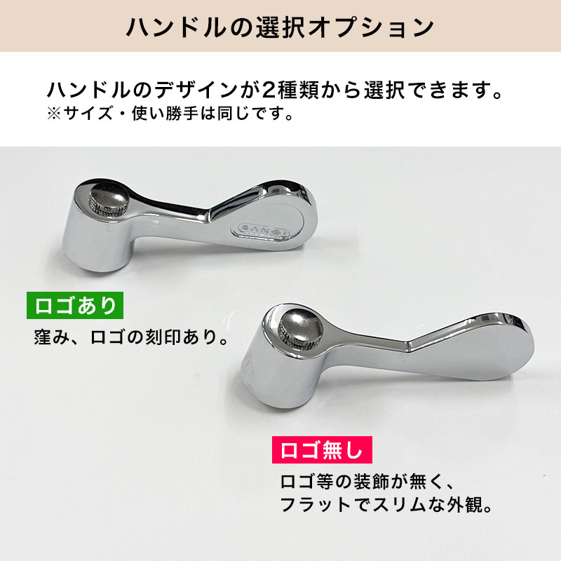 | ハンドル構造 | 二条ネジスピンドル(90度開閉式) |