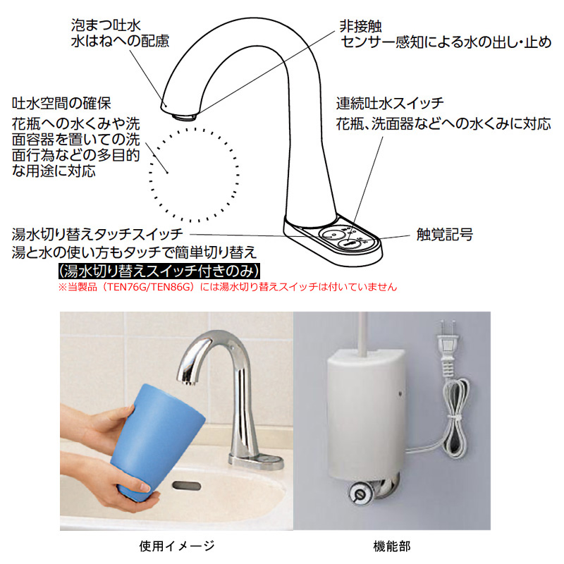 ※この製品は単水栓です。「湯水切り替えスイッチ」は付いておりません。