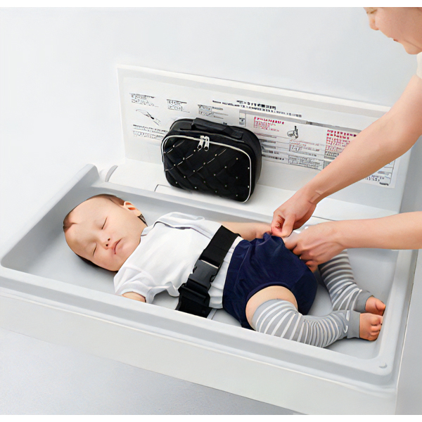 省スペースで設置できるおむつ交換用の開閉式ベビーシート