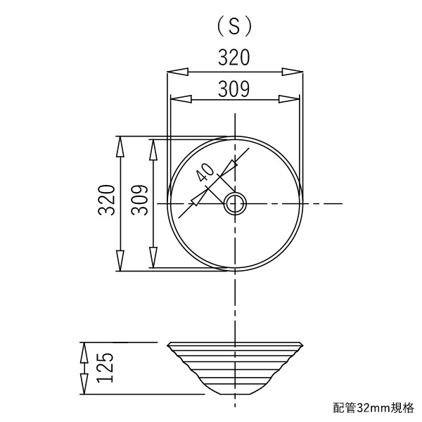水を溜める用途がない場合などに使用する32mm規格排水金具