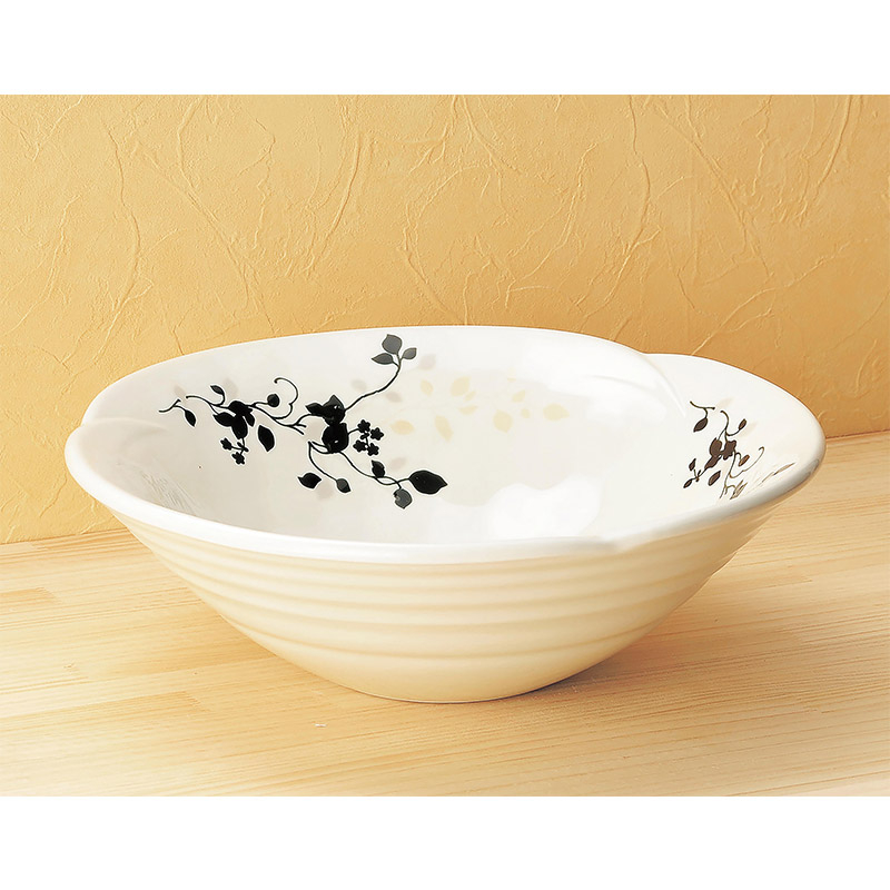 アイボリーの生地にやさしい草花をあしらったナチュラルデザインのボウルです。