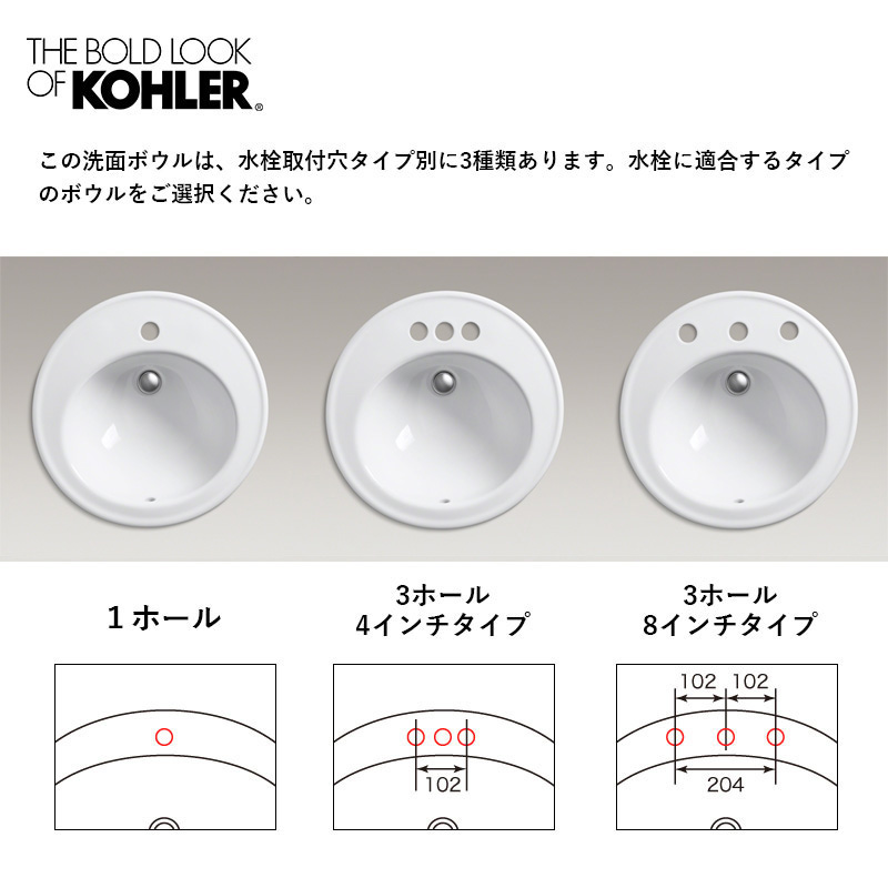 | 水栓取付穴径 | φ32mm×3ヶ所/左右の穴間隔102mm(4インチセンターセットタイプ) |