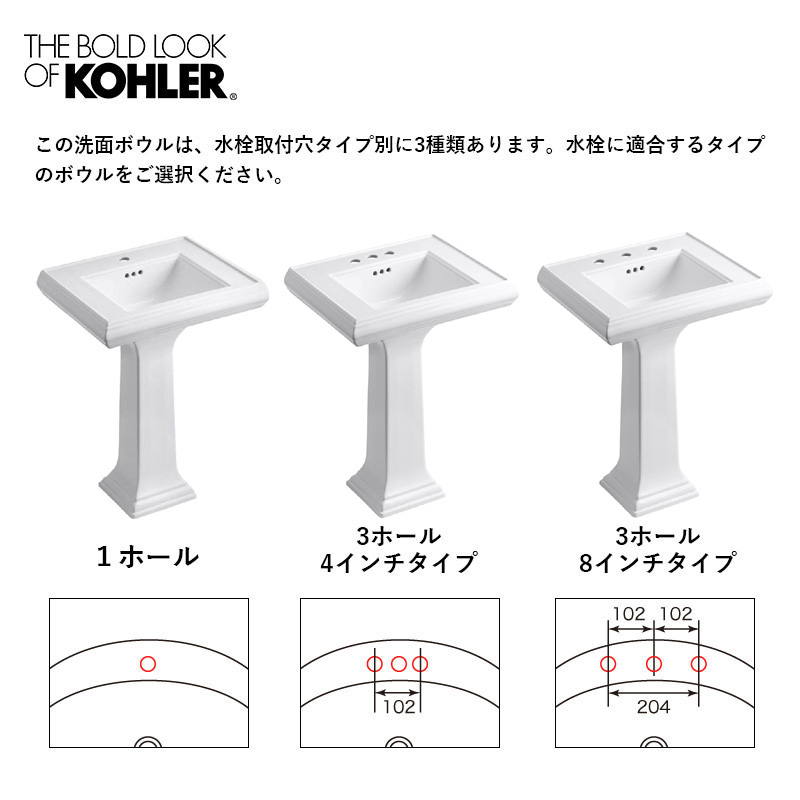 ヨーロッパの伝統的なクラフトマンシップを色濃く受け継ぐ独創的で高級感あふれる洗練されたデザインと品質を誇るアメリカを代表する水廻り製品メーカー KOHLER(コーラー)社製のペデスタル洗面台です。
