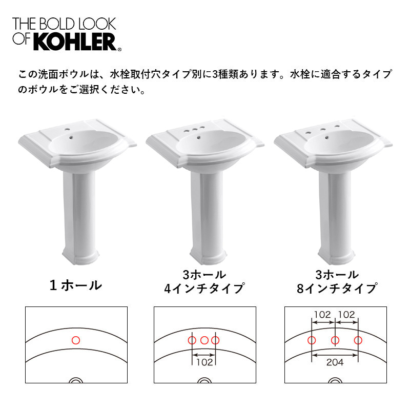 ヨーロッパの伝統的なクラフトマンシップを色濃く受け継ぐ独創的で高級感あふれる洗練されたデザインと品質を誇るアメリカを代表する水廻り製品メーカー KOHLER(コーラー)社製のペデスタル洗面台です。