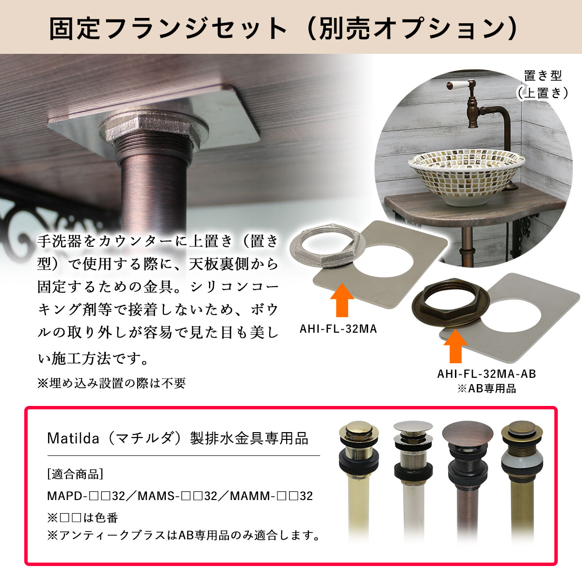 この排水金具は主にオーバーフローの無い手洗鉢(国内製・海外製不問)、輸入ガラスボウル、輸入洗面器などと組合わせて使用します。