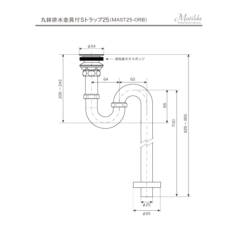 | 種別 | 小型手洗い器用 25ミリ規格排水金具(アフレ無し) |