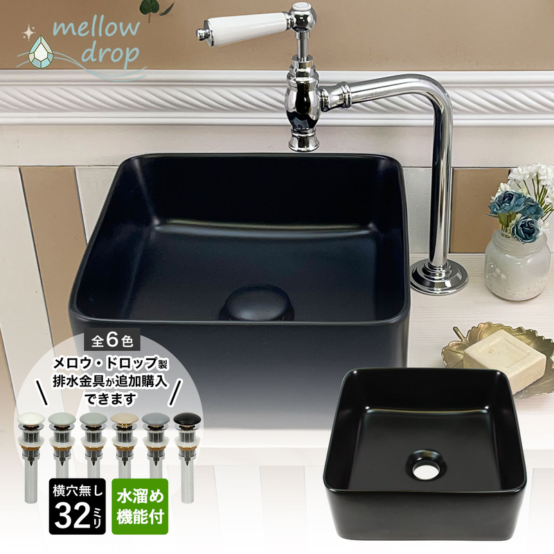 スクエア型のSQUARE手洗い器。直線的でモダンな印象の正方形に大き目の角丸デザインを施すことで優しく温かな印象に。四角い形状のボウルは壁やコーナーに沿って取り付けることができるので、洗面台のスペースを無駄なく大限に活かしたい場合にもおすすめです。