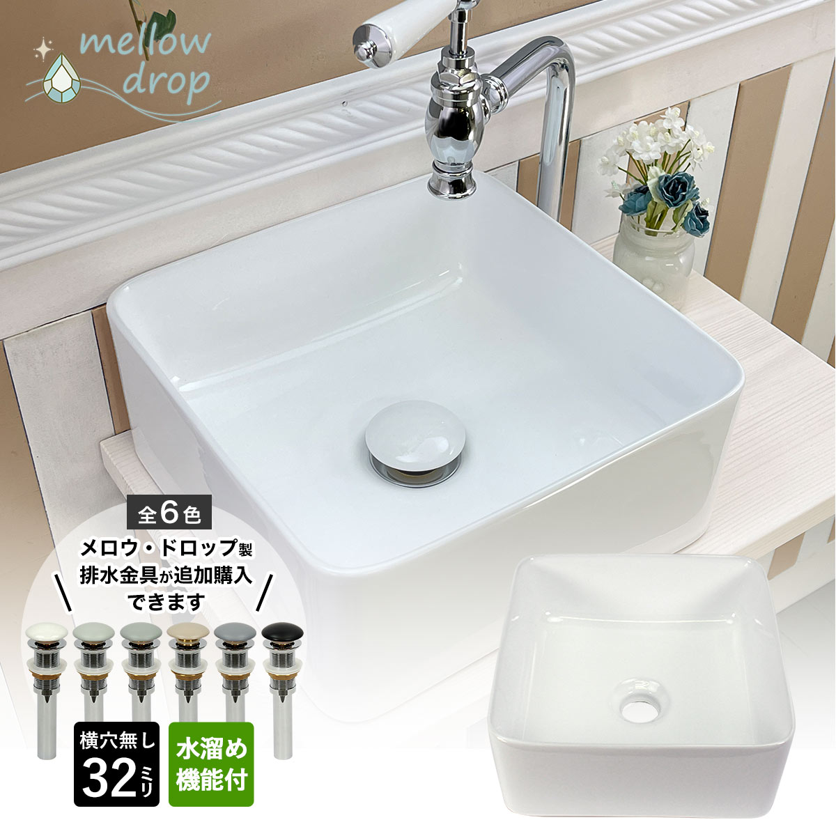![]() メロウ・ドロップ製排水金具(横穴無し)+ メロウ・ドロップ製排水金具専用固定フランジセット |