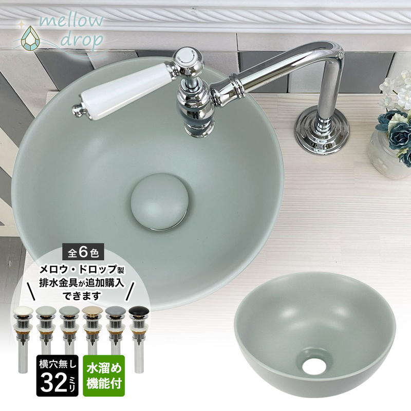 mellow drop/メロウ・ドロップは、彩度を抑えたくすみカラーやアッシュ、グレイッシュな色合いの洗面ボウルと排水金具のブランドです。上品でまろやかなカラーのボウルは人気の北欧テイストのお家づくりや、時代に流されないナチュラルモダンスタイル、ほんのり和テイストなシーンなど、様々な空間に馴染みます。