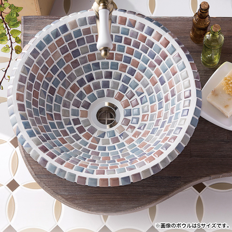 懐かしくてあたたかい印象の昭和レトロなモザイクカラーの洗面ボウル。組合わせる蛇口やインテリア次第で、和風、洋風、アジアンテイストなど様々な表情を見せてくれる手洗器です。