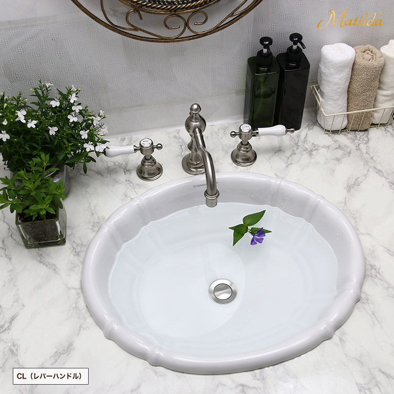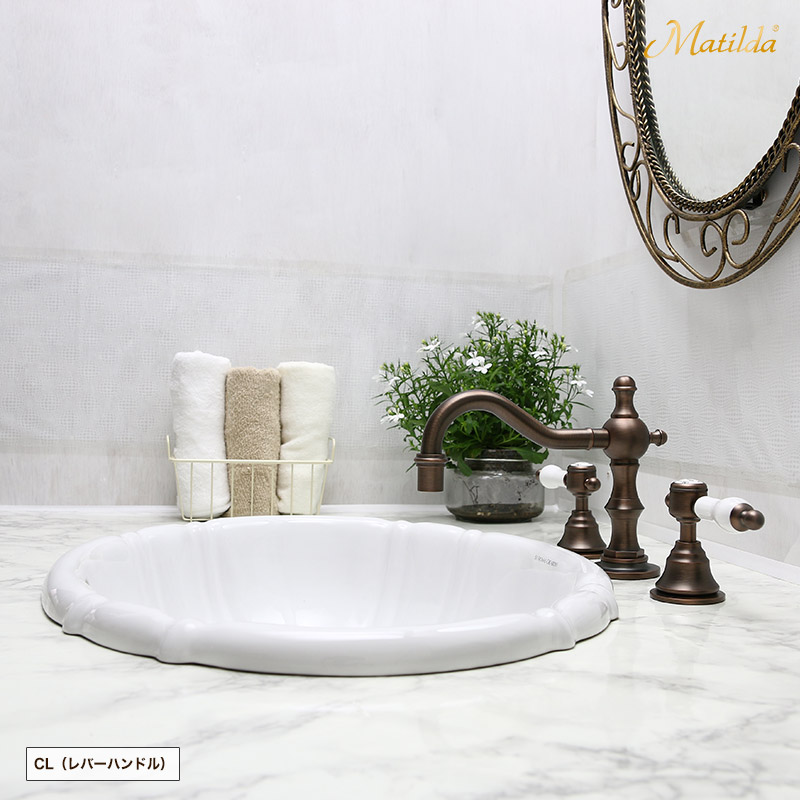 丸みを帯びた柔らかな形状にアクセントラインが特徴的な洗面ボール。アンティガ・グランデよりもひと回り大きく設計されており、水ハネを気にせずゆったりとお使い頂けます。