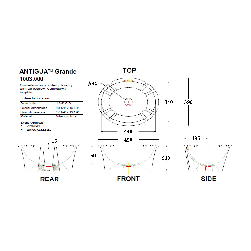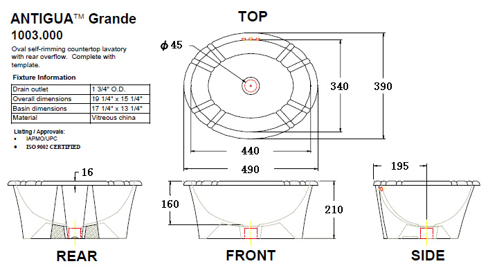 洗面器や手洗器は製品の性質上、1%~2%程度の公差が生じる場合があり、若干の個体差があります。