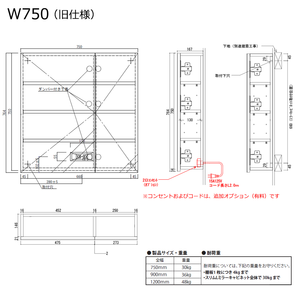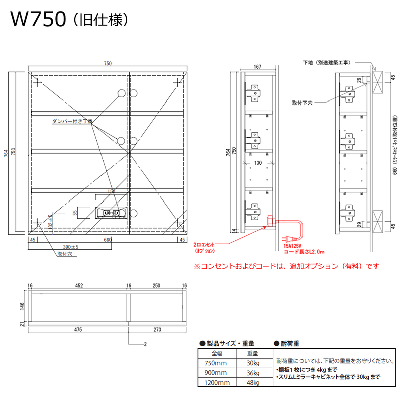 - WB750SL/WB750RSL:W750×D167×H750 mm(重量:25kg)