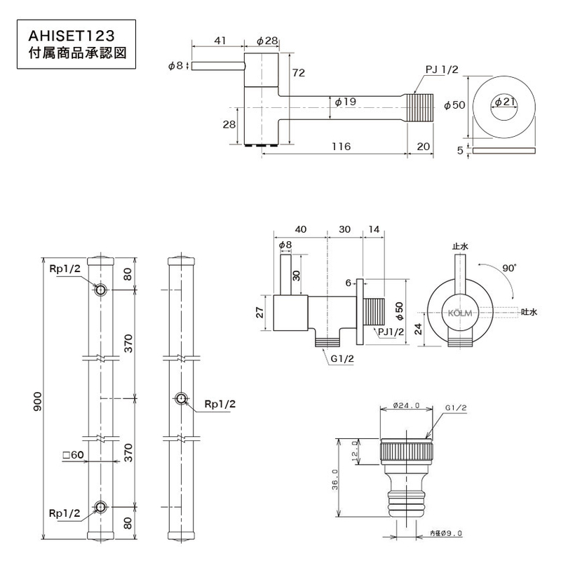 補助水栓はホースをワンタッチで接続できる接続アダプタ(材質:黄銅)も付属。
