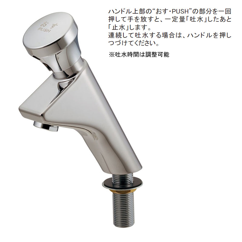 蛇口の上部を押すと吐水し、設定した時間水が出ると自動で止まります。