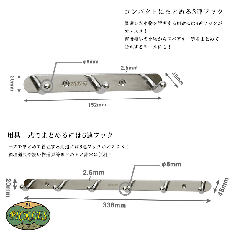 PICKLES(ピクルス)シリーズから、「ステンレス6連フック PK-A9066」のご紹介。