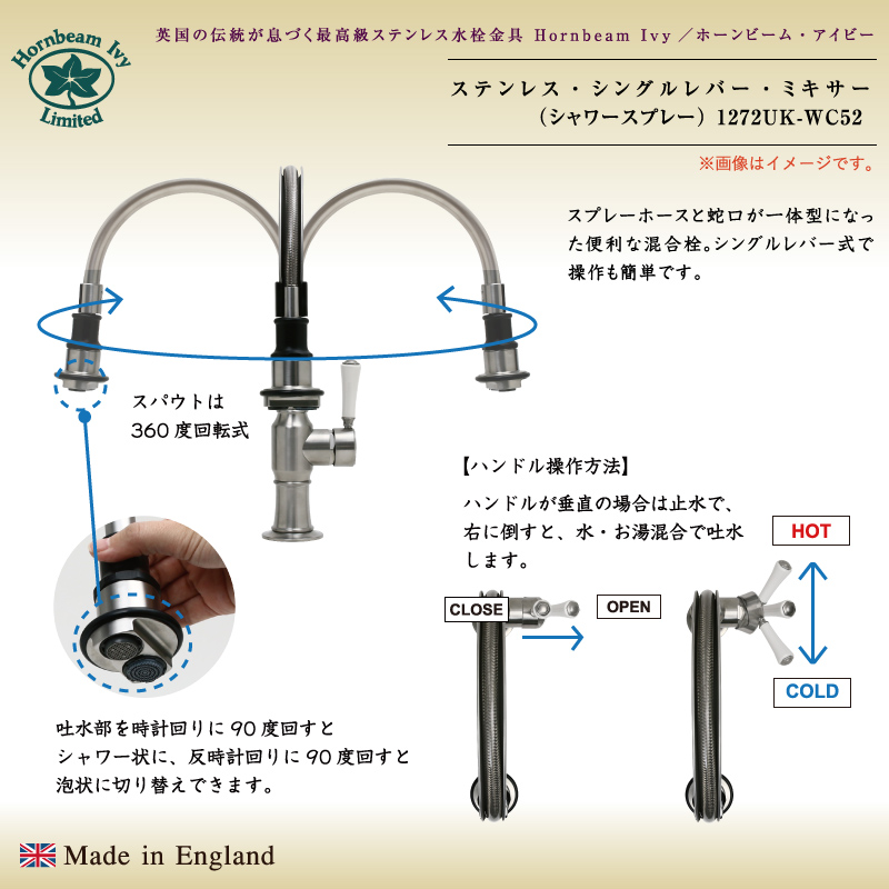 ホーンビーム・アイビー/Hornbeam Ivy社(イギリス)は、世界のメージャーブランド、"コーラー/KOHLER(アメリカ)"や"グローエ/GROHE(ドイツ)"にオリジナル製品をOEM提供していることで世界の水栓業界に知られる英国を代表する水栓メーカーです。