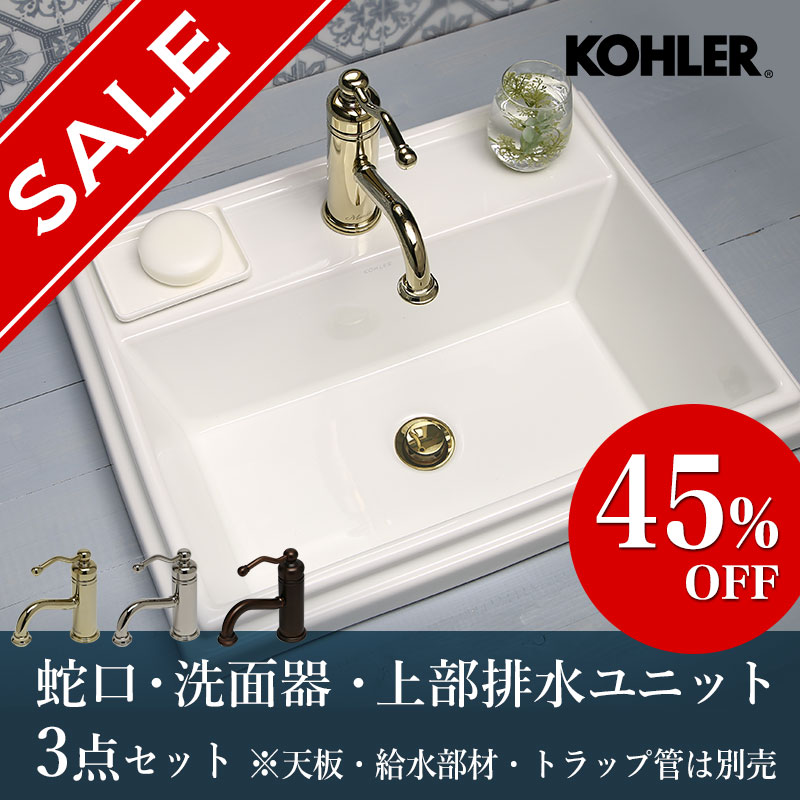【ご注意】この商品は「蛇口・洗面ボウル・32mm規格上部排水ユニット」の3点セットです。※天板カウンター・排水トラップ管・止水栓は別売りです。