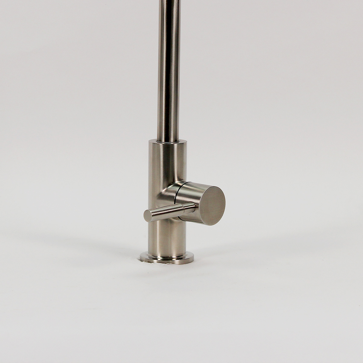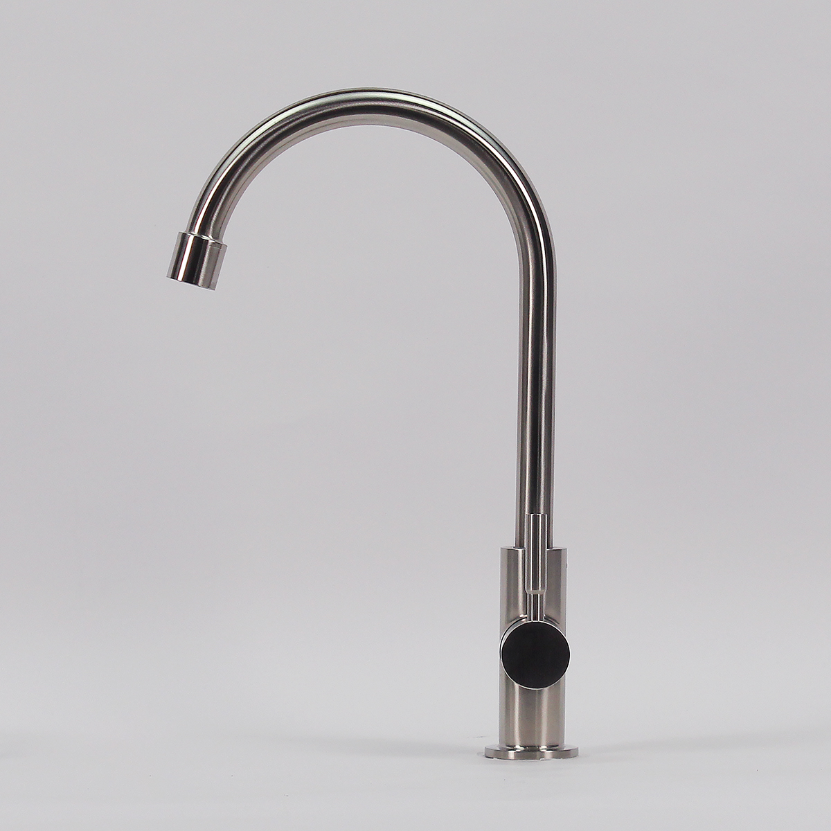 洗面や手洗いに最適な安全で衛生的なSUS304 ステンレス素材のスワン型単水栓です。