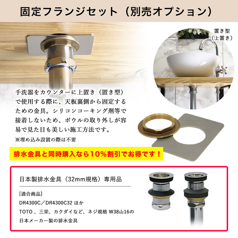 | 規格 | 32ミリ規格オーバーフロー(アフレ)の無い洗面ボウルに対応 |