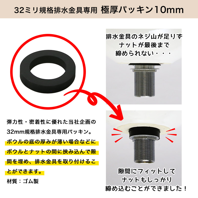 | 規格 | 32ミリ規格の排水金具に対応 |