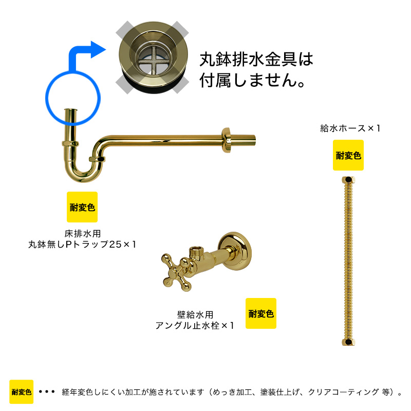 このセットには「丸鉢排水金具」は含まれておりません。必要な場合は下記より別途お求めください。