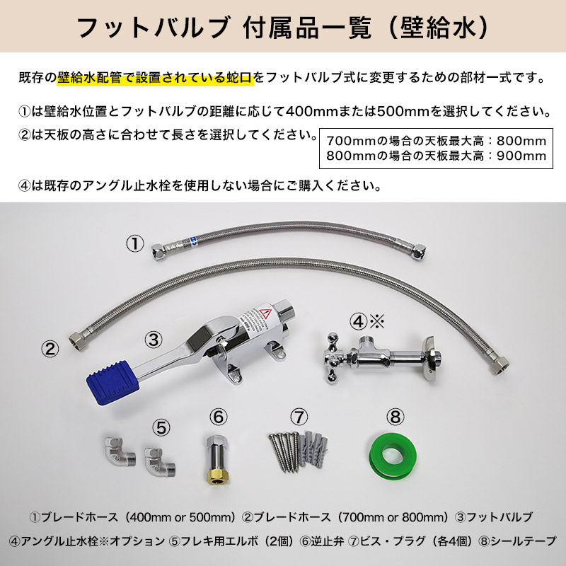 | 種別 | 【蛇口に触らず水を出す】衛生フットバルブセット(壁給水用) |