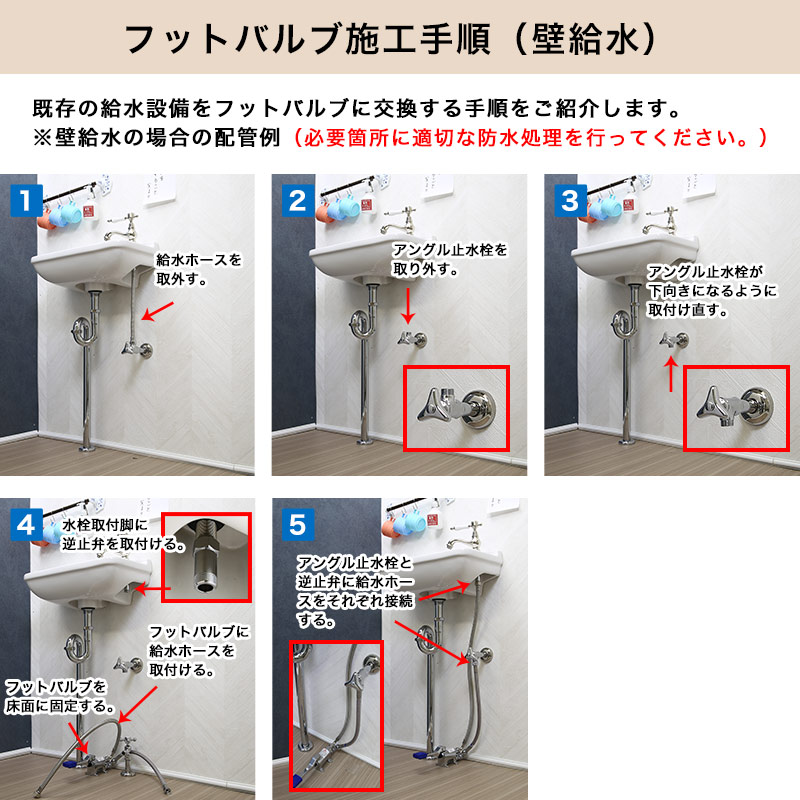 ※このセットは、既存の配管が「壁給水」用のフットバルブセットです。