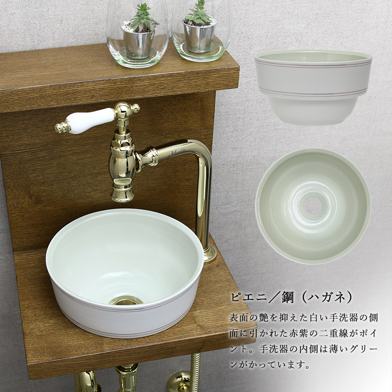 手洗器は径210mmとミニサイズながら、ボウルに深さがあり手を洗うには充分。それぞれにハンドメイドの素朴さや温もりを感じる6種からお選びいただけます。