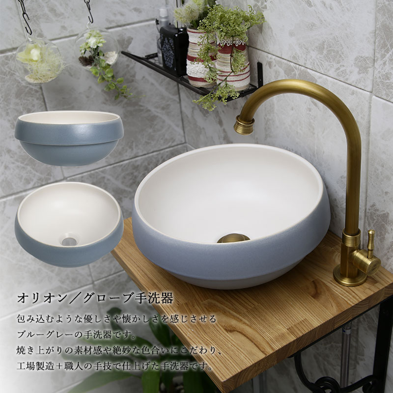 ミドルサイズの立水栓スワンキー・ネオと淡く優しい風合いの置き型ボウル「グローブ」との組み合わせは、デザイン的にも使い勝手も文句なしのベストコンビ!ボウルの色によって雰囲気や表情も変わるので、お気に入りの組み合わせをじっくり選んでくださいね。トイレだけでなく、ゲストを迎える玄関やリビングの片隅などにインテリアとしても設置したくなるような可愛い手洗いセットです。